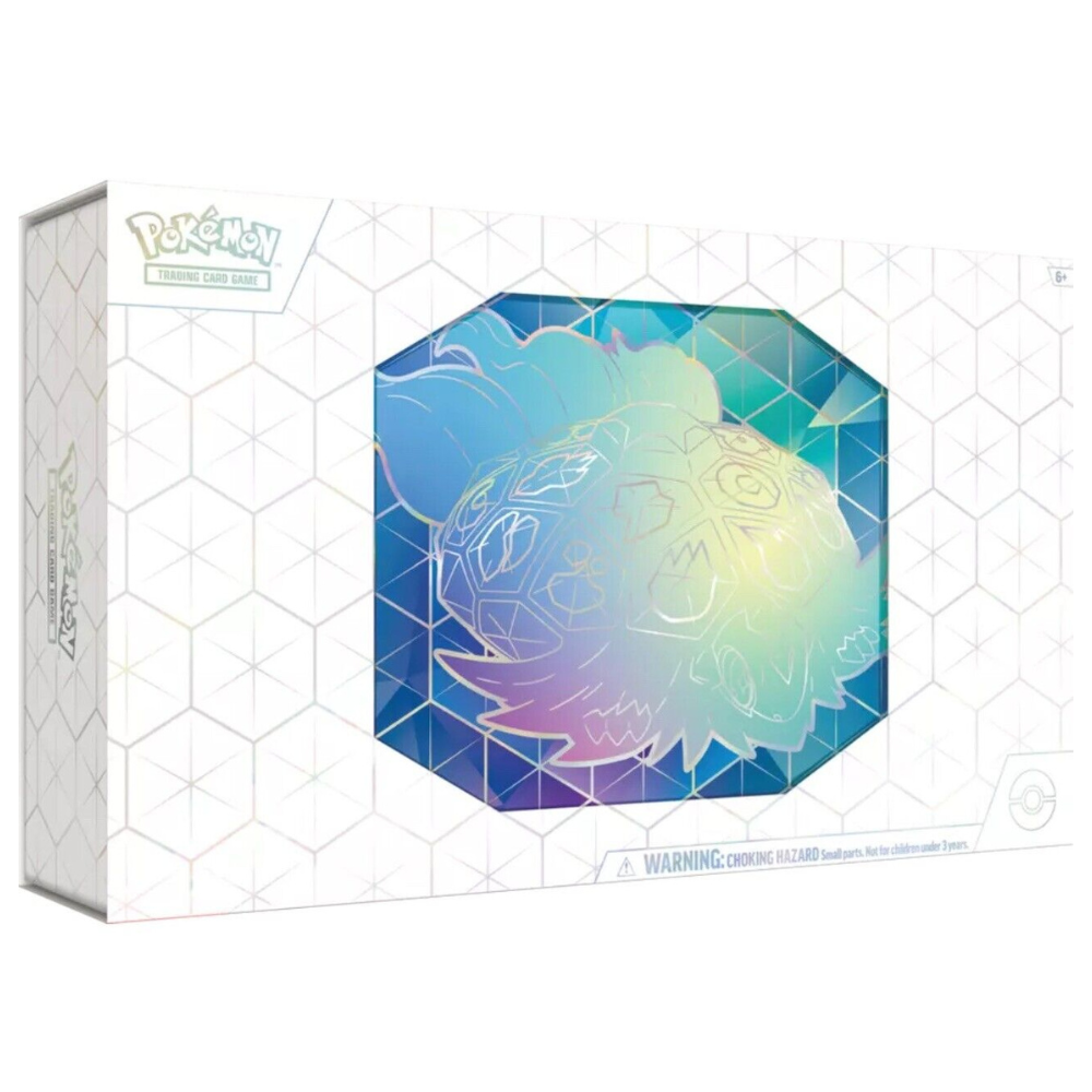 È affiancato da altri due Pokémon Tera Stellare ex pronti per essere giocati e da un forziere del tesoro pieno di accessori di gioco, buste di espansione e persino un set completo di carte Energia Base con un aspetto foil cristallino.